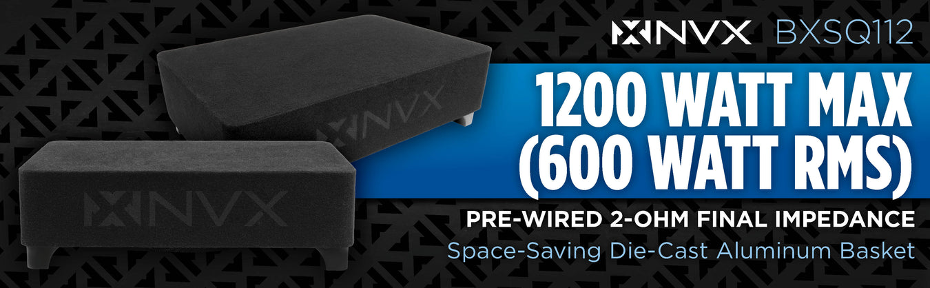BXSQ112 1200W Peak (600W RMS) Sealed 2-Ohm Loaded Enclosure with Single 12" SQ-Series Shallow-Mount Subwoofer
